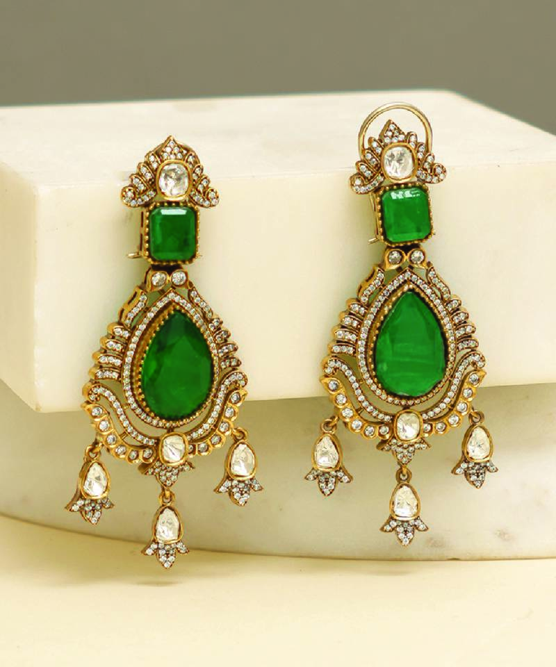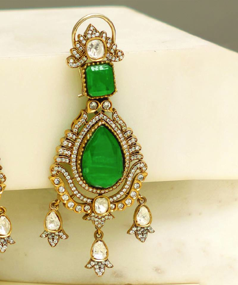 Product Name Gold Plated Kundan Green Stones Necklace Set