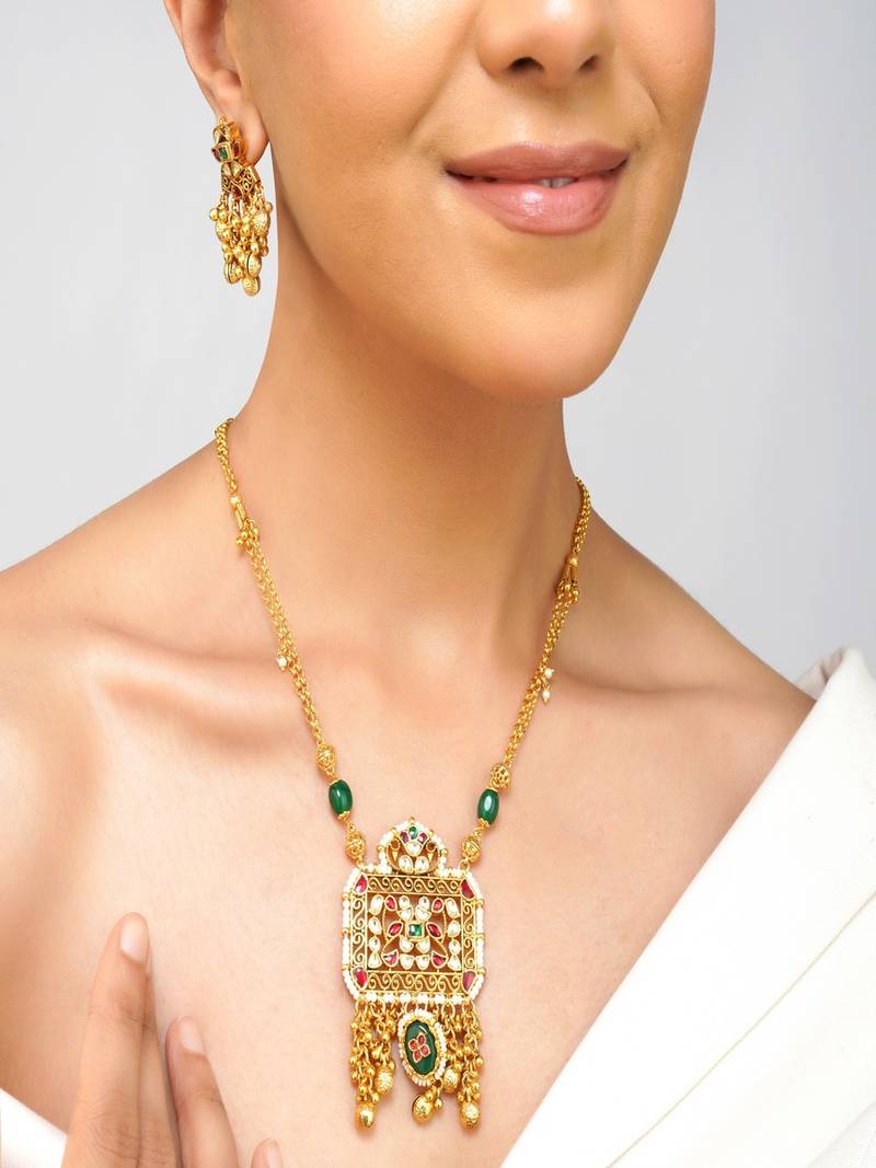 Product Description | Add A Touch Of Regal Elegance To Your Jewelry Collection With This Exquisite Multi Color Kundan Pendant Set, Beautifully Paired With Emerald Green Pearls. Meticulously Handcrafted In A Real Gold Look, This Pendant Set Features Traditional Kundan Artistry And Premium 22 K Gold Plating, Making It Perfect For Festive, Bridal, And Everyday Ethnic Wear.
