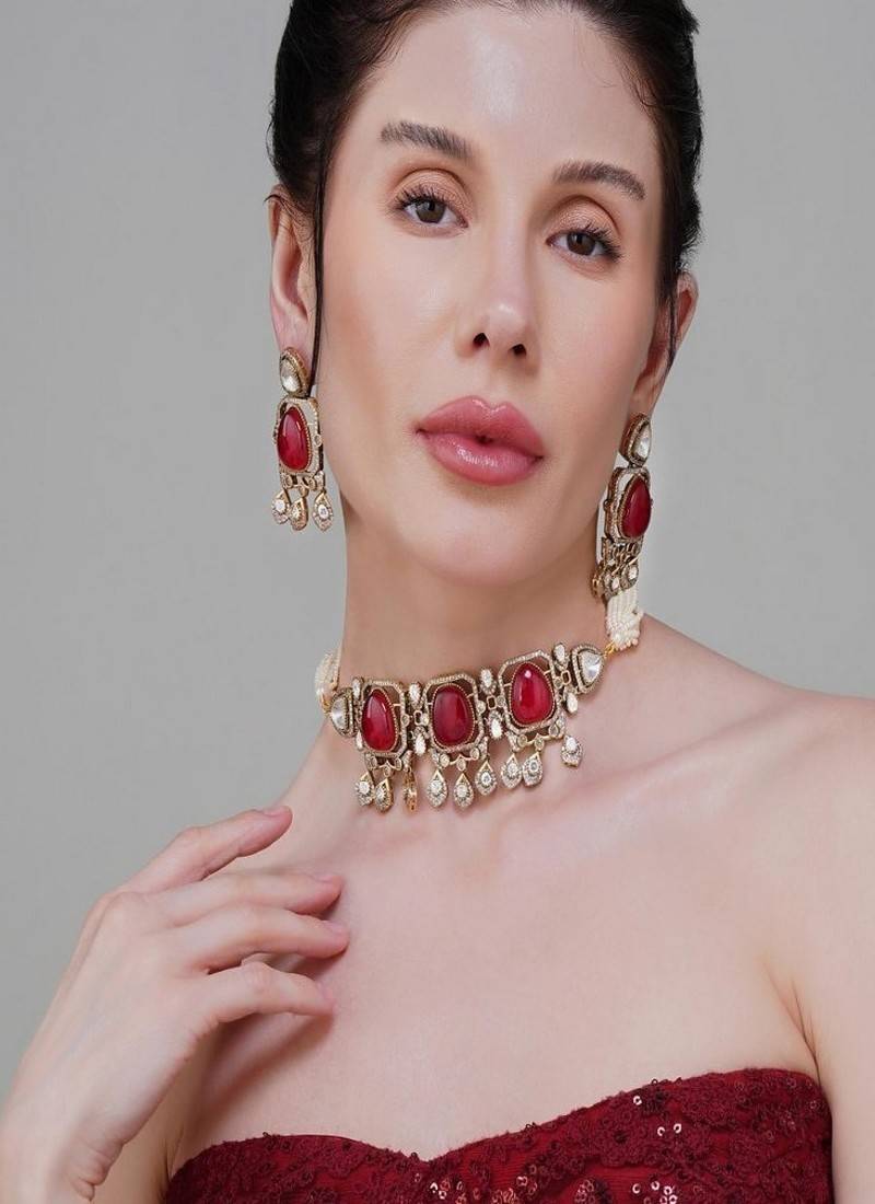 Product Name | Gold Plated Kundan Red Stone Choker Necklace Set | |