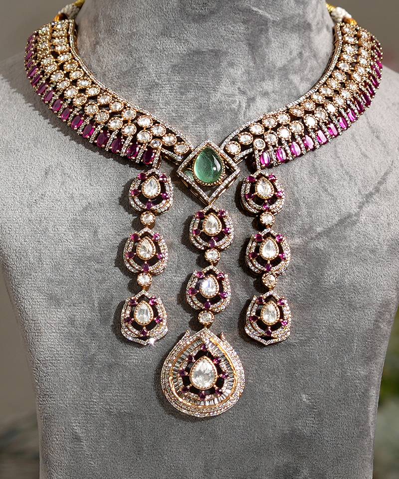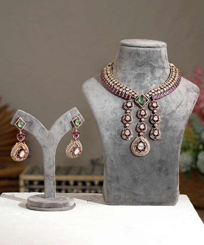 | Product Description | Perfect For Brcelebrate The Wedding And Festive Season In Style With This Designer Kundan Necklace Set In Mint And Ruby Colors, Crafted To Exude Royalty And Elegance. Adorned With Intricate Kundan Work And Vibrant Dual Tones, This Jewellery Set Strikes The Perfect Balance Between Tradition And Trend.