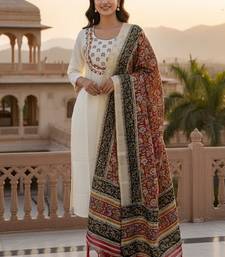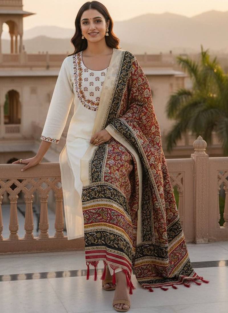| Product Name | Cream Khadi Cotton Kurti Pant Dupatta Set | |