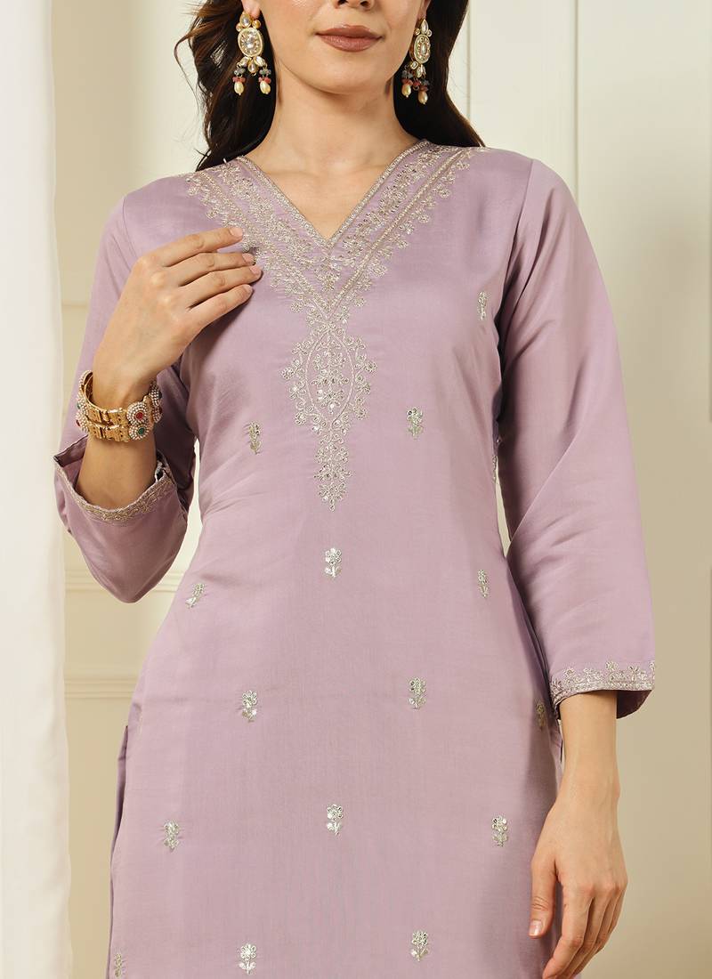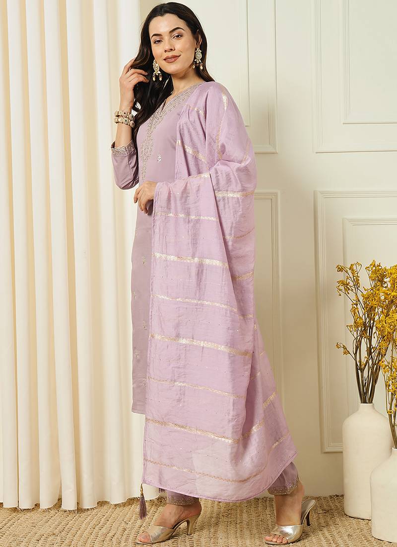 Product Name Lavender Roman Silk Kurti Pent Dupatta Set