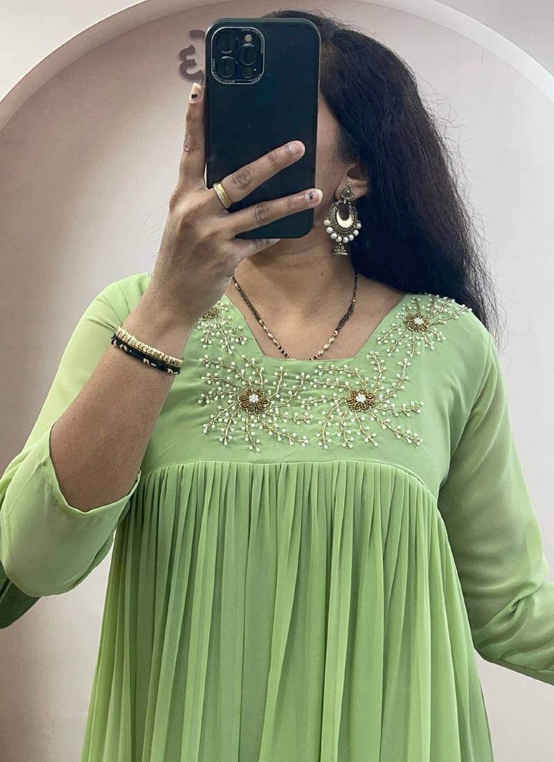 Light green georgette long kurti stitched