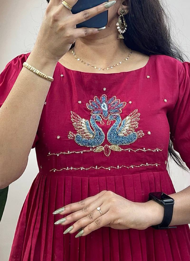 | Product Description | Add Effortless Elegance To Your Ethnic Wardrobe With This Beautifully Crafted Pure Mul Cotton Kurti Featuring Intricate Khatli (Maggam) Handwork And Stylish Designer Sleeves. Designed With A Graceful 3.0 Meter Flair, This Kurti Offers Comfort With A Rich Festive Appeal.