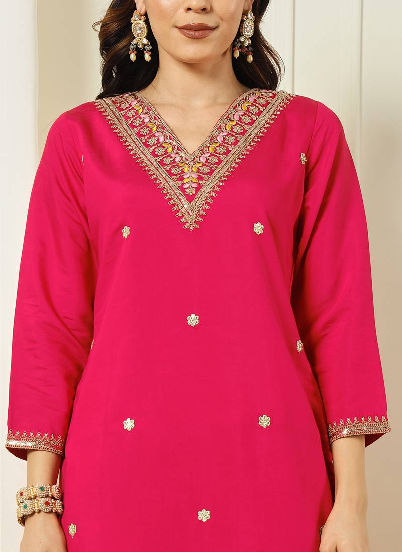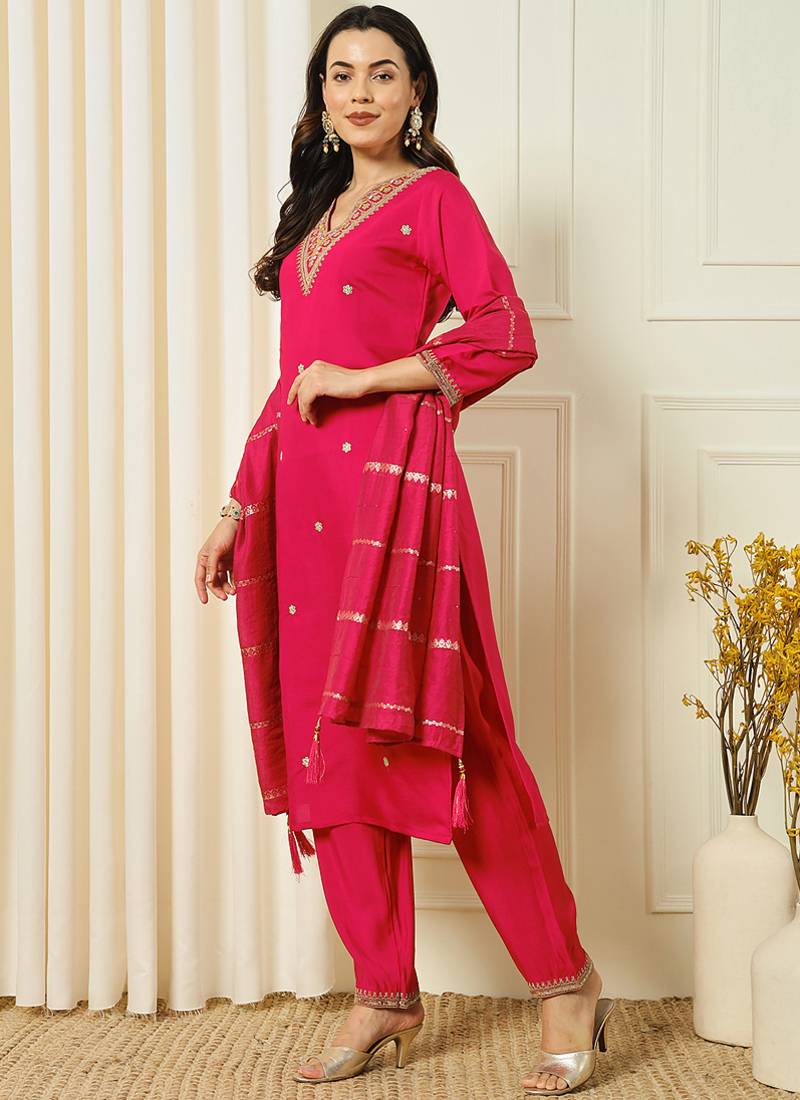 | Product Name | Pink Roman Silk Kurti Pent Dupatta Set | |