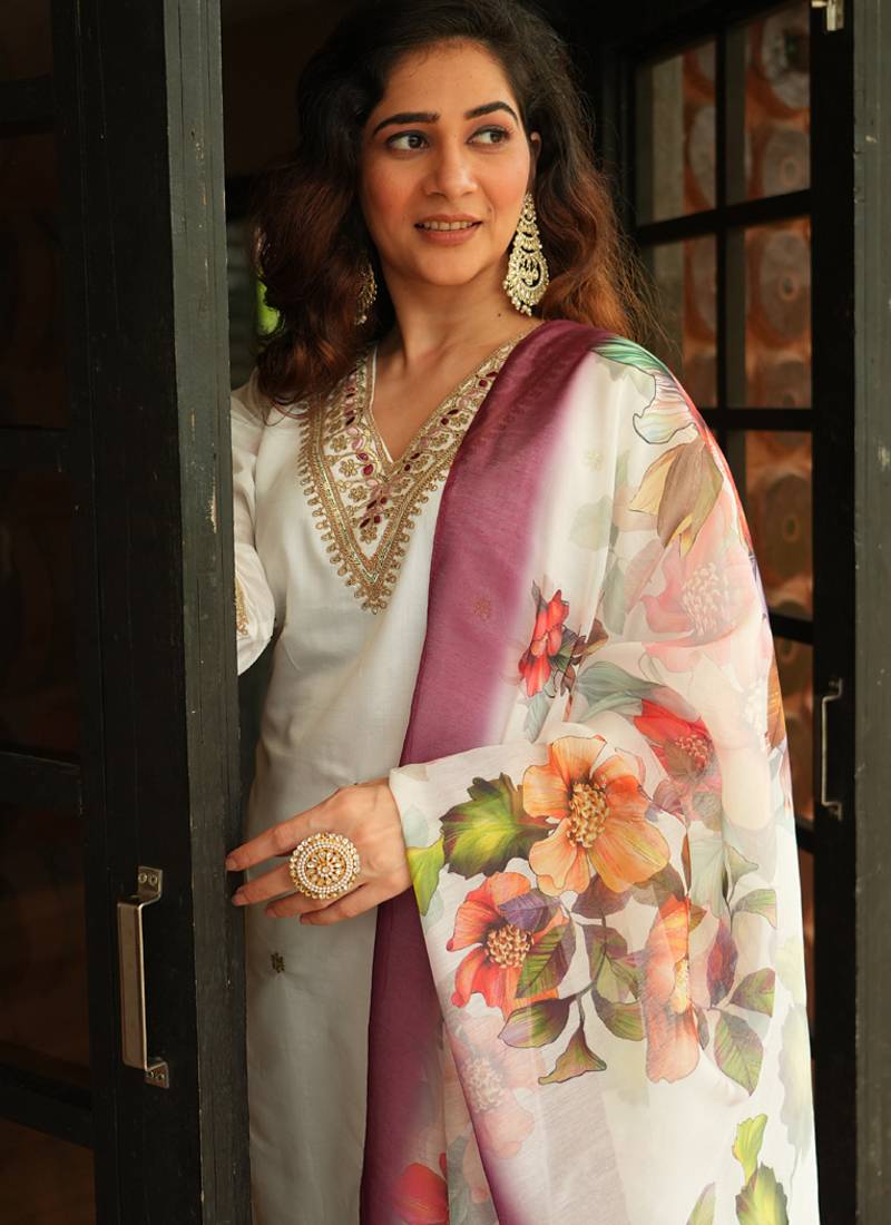 | Product Name | White Roman Silk Kurti Pent Dupatta Set | |