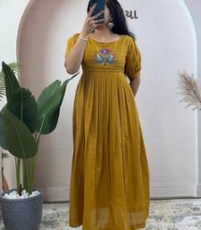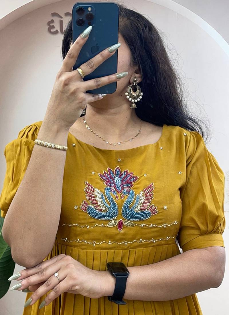 | Product Name | Yellow Pure Mul Cotton Handwork Kurti With Designer Sleeves | |