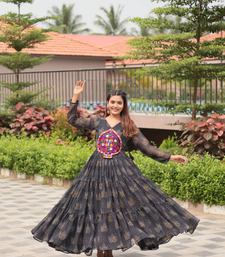 Black festive wear designer faux georgette gamathi work with real mirror work readymade suit stitched