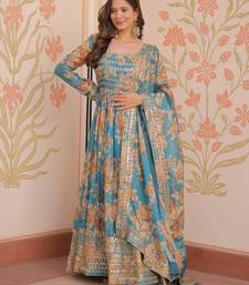 | Product Name | Blue Festive Wear Designer Russian Silk Digital Print With Embroidered Sequence Work Readymade Suit | |