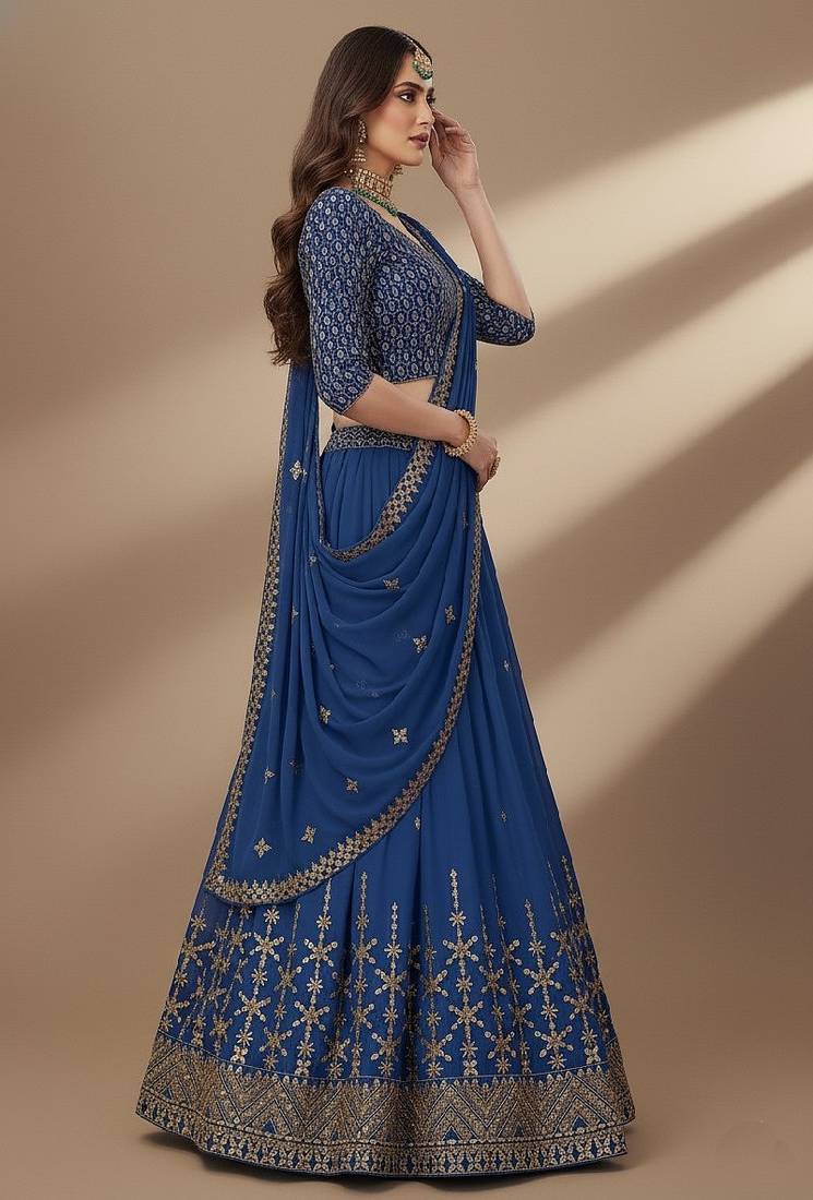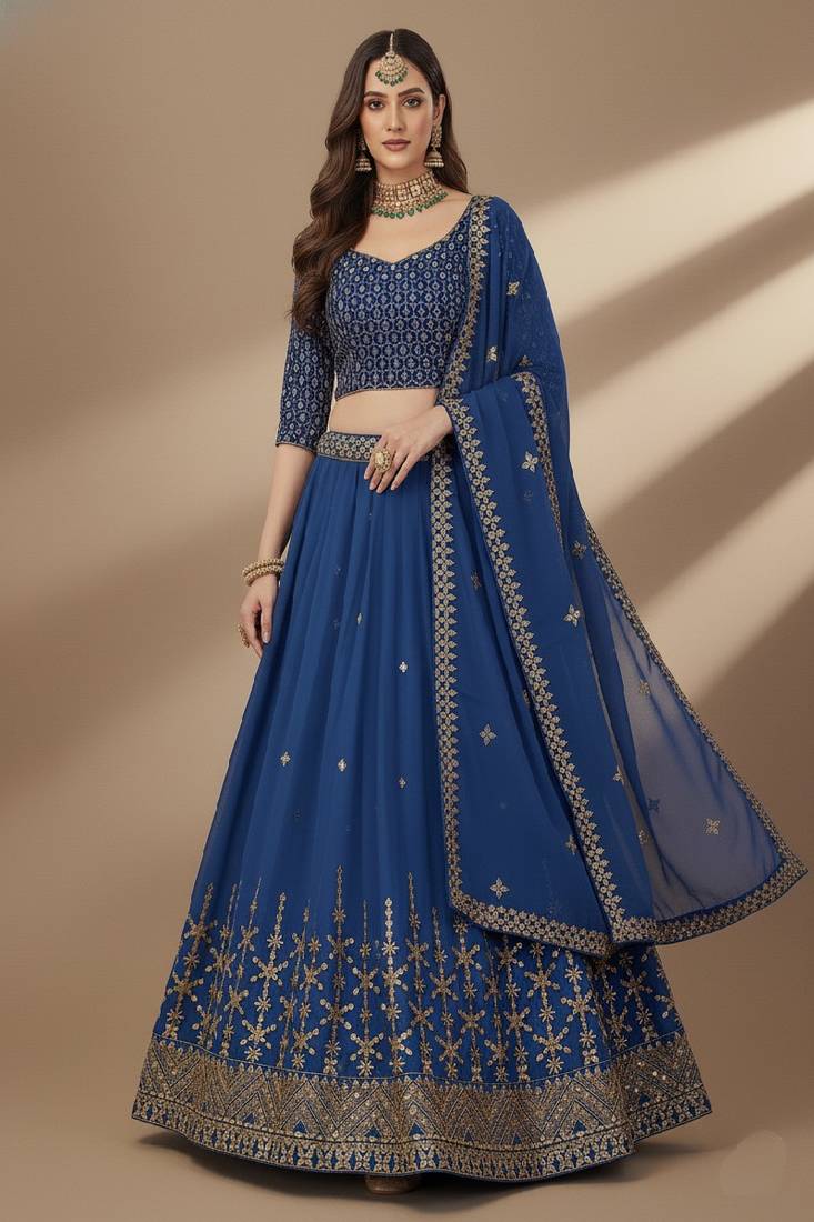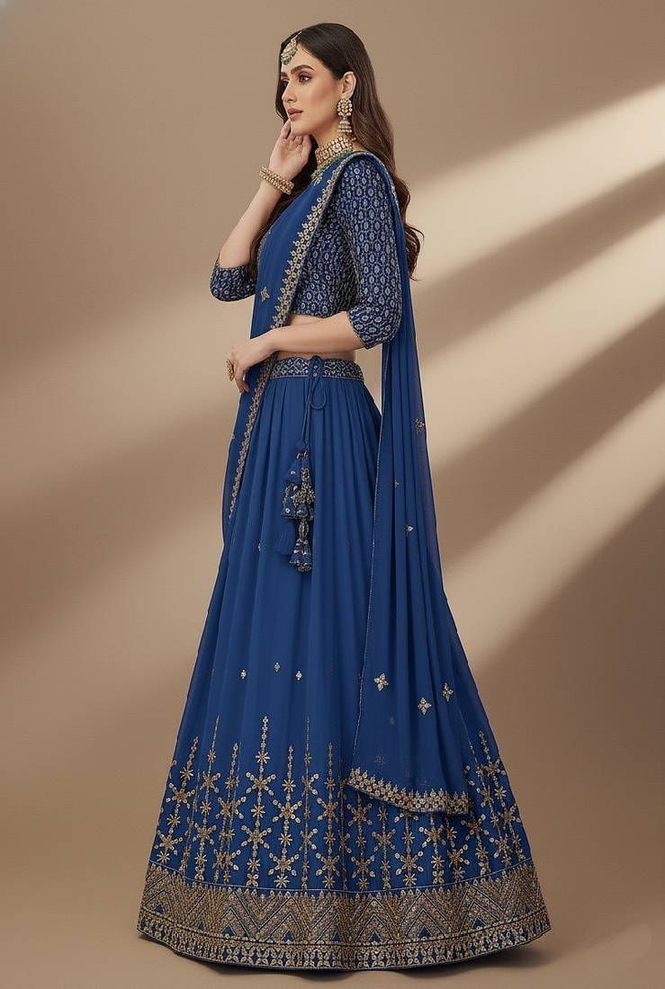 | Product Name | Blue Sequence 9mm , Embroidery Thread , Zari Georgette Lehenga Choli With Dupatta | |