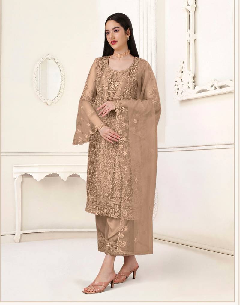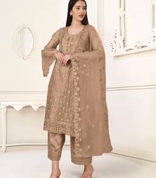 Brown & butterflyNet designer heavy traditional wear salwar suit semi stitched