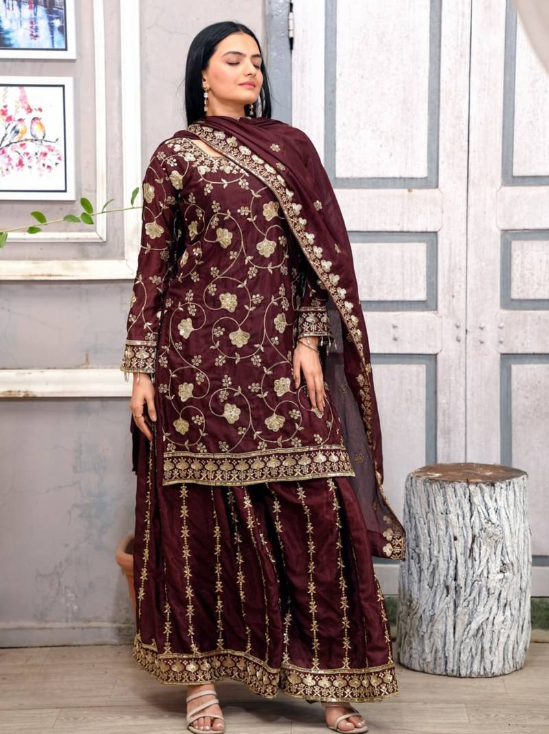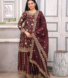 | Product Name | Dark Brown Festive Wear Designer Chinon Readymade Suit | |