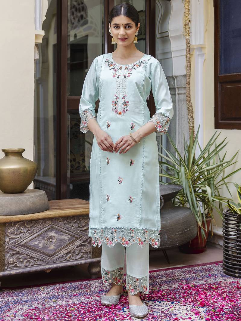 | Product Name | Green Embroidered Viscose Roman Silk Salwar Suit | |