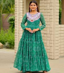 Green festive wear designer faux georgette embroidery thread work with real mirror work readymade suit stitched