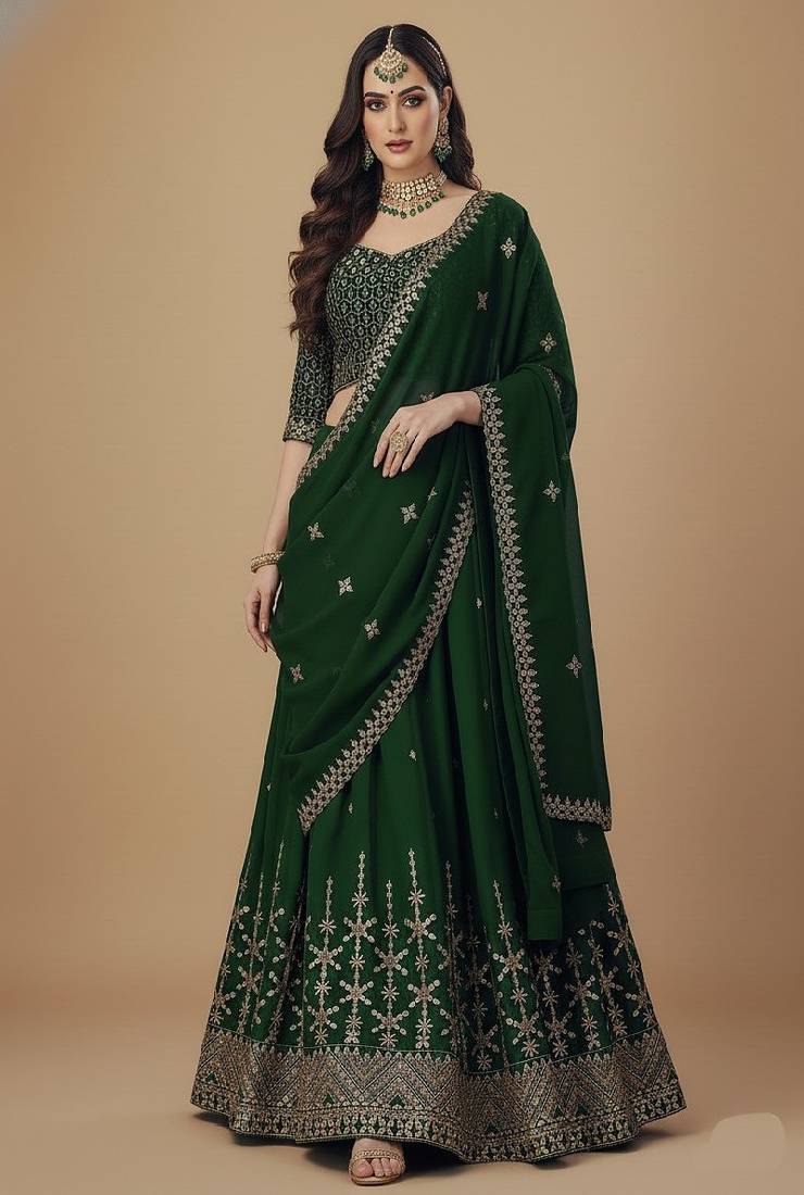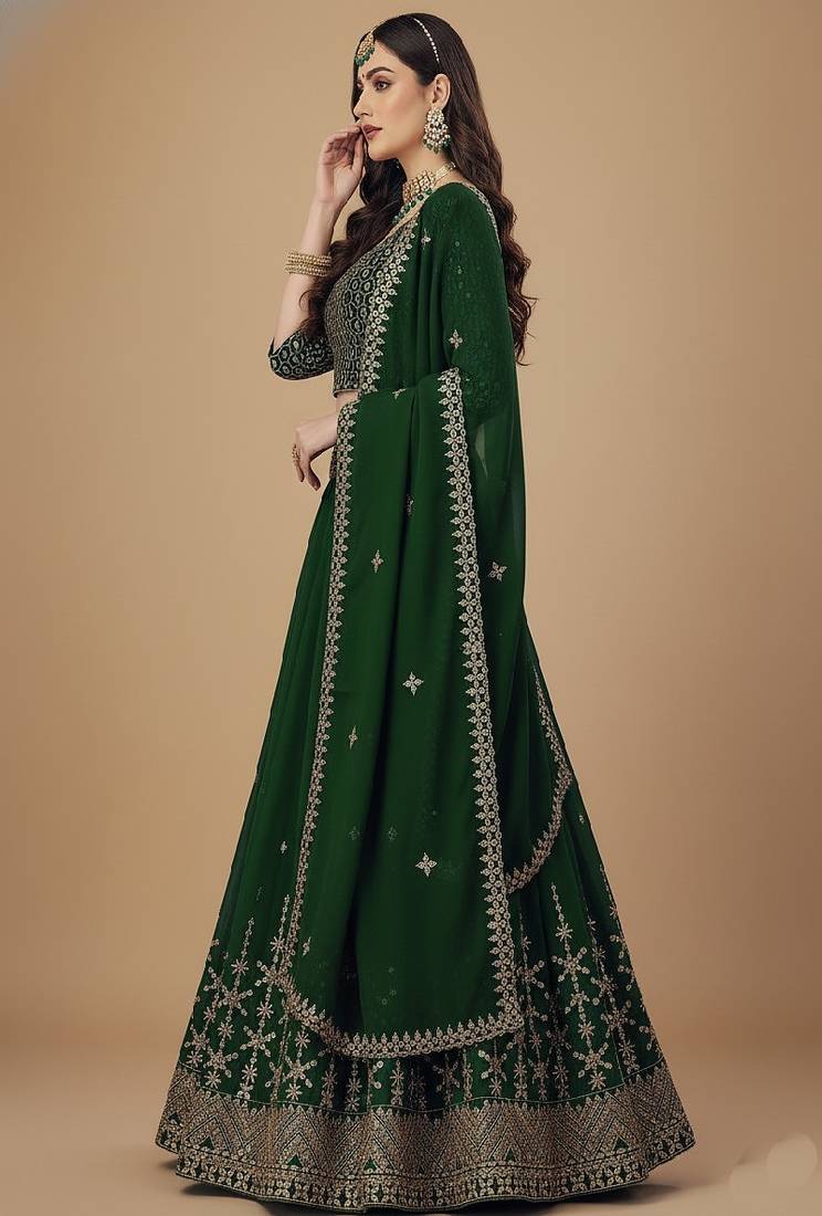 Green sequence 9mm , embroidery thread , zari georgette lehenga choli with dupatta
