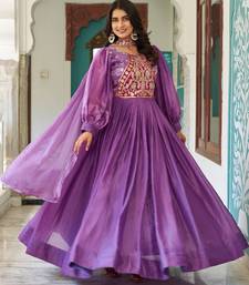 Lavender festive wear designer fendy silk heavy sequence & thread embroidery work readymade suit stitched