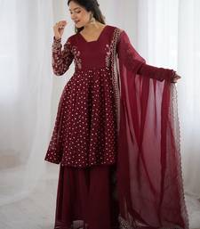 Maroon festive wear designer crunchy silk embroidery sequence work readymade suit stitched