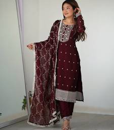 Maroon festive wear designer pure blooming rangoli silk readymade suit stitched