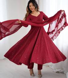 Maroon festive wear designer pure soft faux georgette lukhnowi sequence work readymade suit stitched