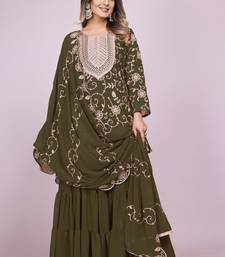 Mehendi green festive wear designer fox georgette embroidered work readymade suit stitched