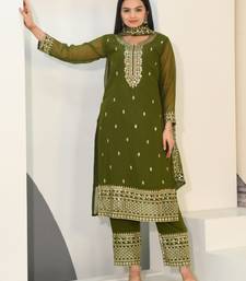 Mehndi green festive wear designer fox georgette heavy embroidery sequence work readymade suit stitched