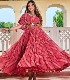 | Product Name | Pink Festive Wear Designer Bandhni Print In Faux Georgette Gamathi Work With Real Mirror Work Readymade Suit | |