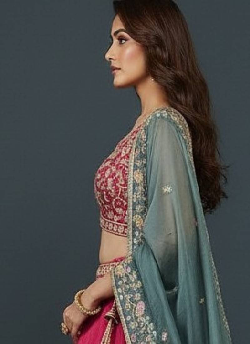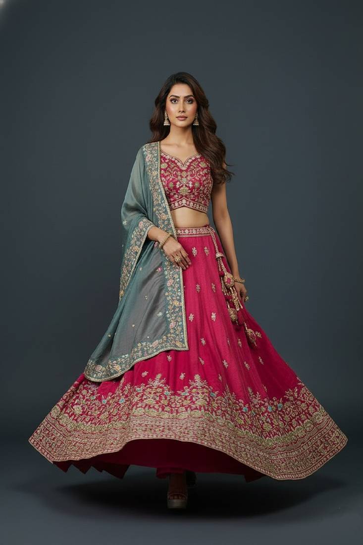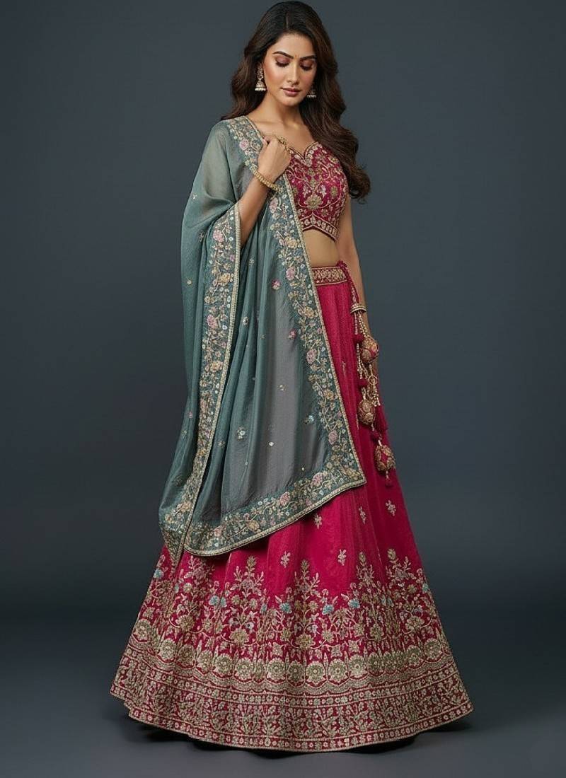 Rani pink embroidery cosmos silk lehenga choli with dupatta