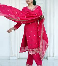 Rani pink festive wear designer blooming vichitra heavy embroidery sequence work readymade suit stitched