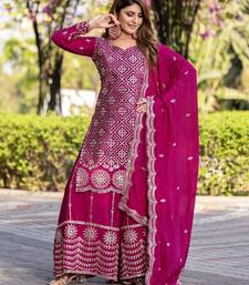 Rani pink festive wear designer chinon readymade suit stitched