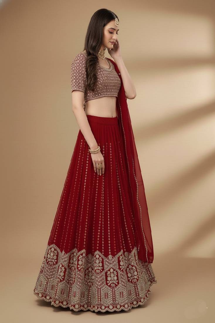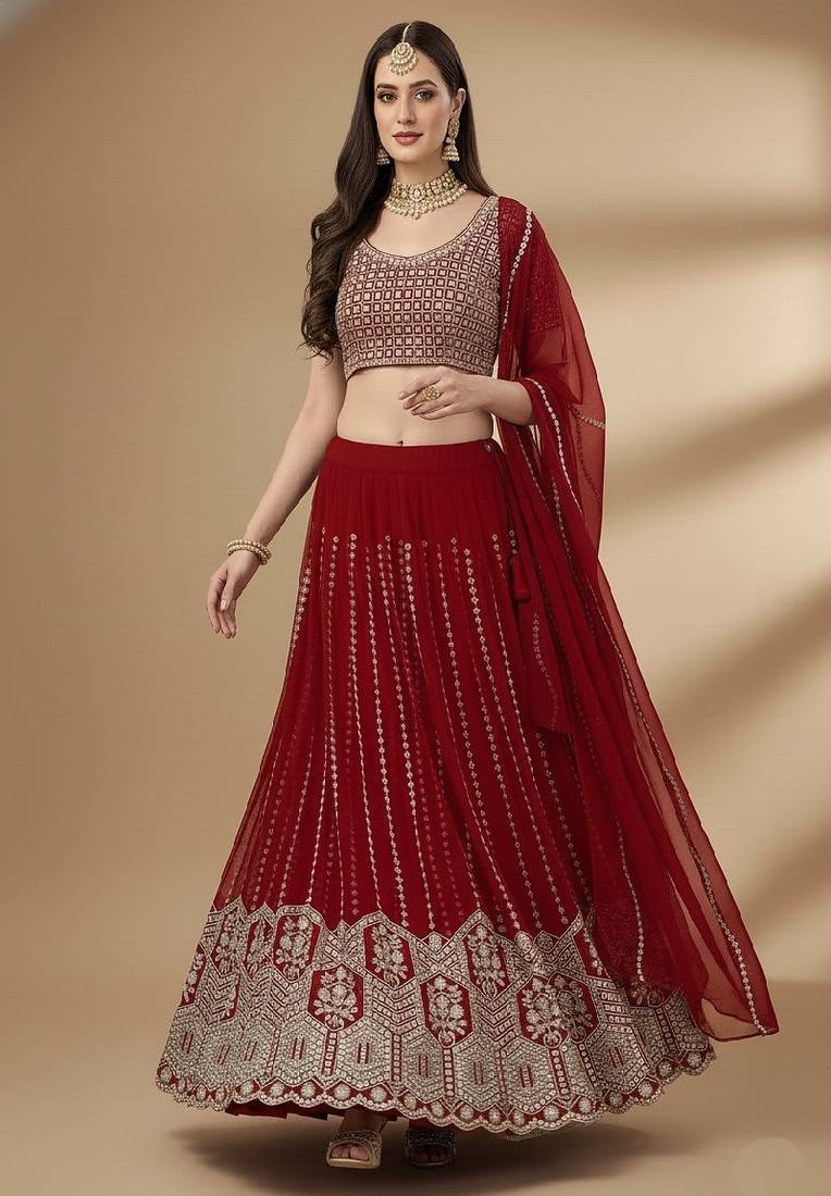 | Product Name | Red Embroidery Sequence Faux Georgette Lehenga Choli With Dupatta | |