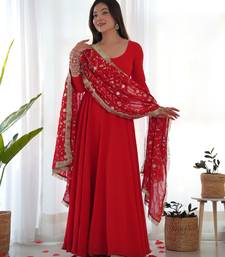 | Product Name | Red Festive Wear Designer Heavy Pure Soft Fox Georgette Embroidered Sequins With Zari Work Readymade Suit | |