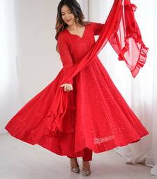 Red festive wear designer pure soft faux georgette lukhnowi sequence work readymade suit stitched