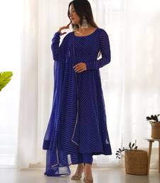 Royal blue festive wear designer heavy pure soft georgette print work readymade suit stitched