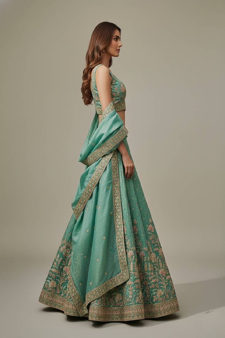 | Product Name | Sea Green Embroidery Tissue Lehenga Choli With Dupatta | |