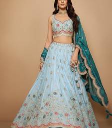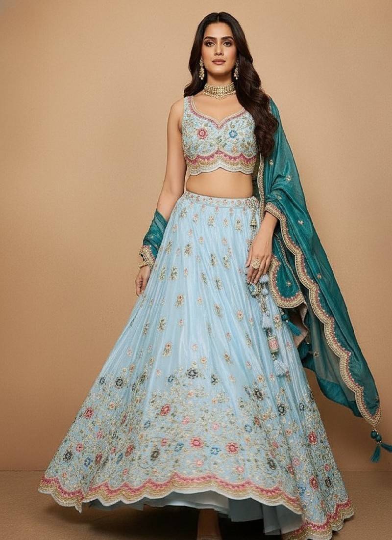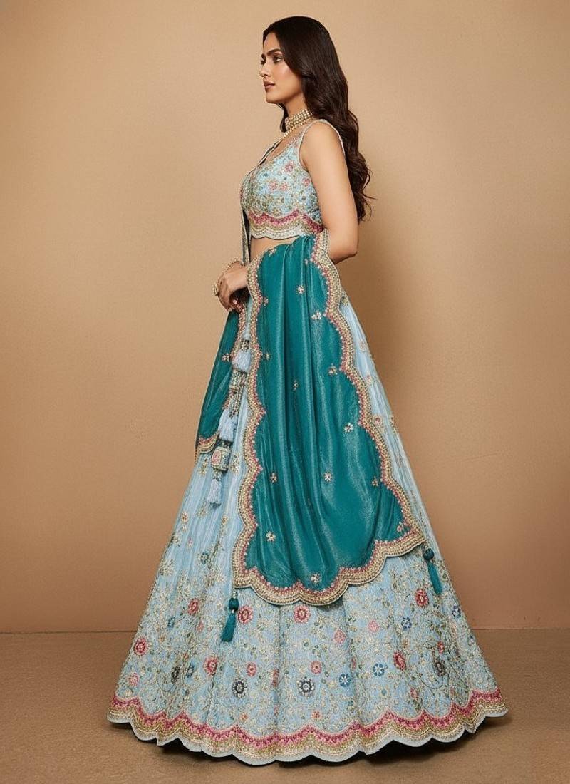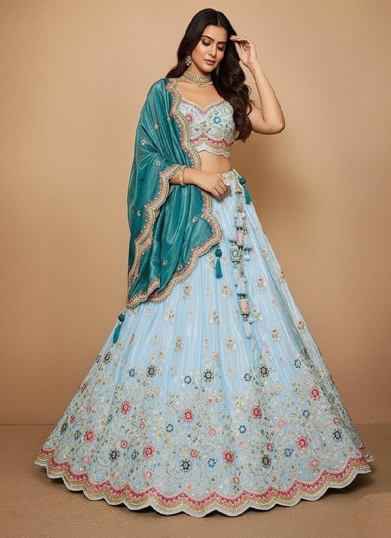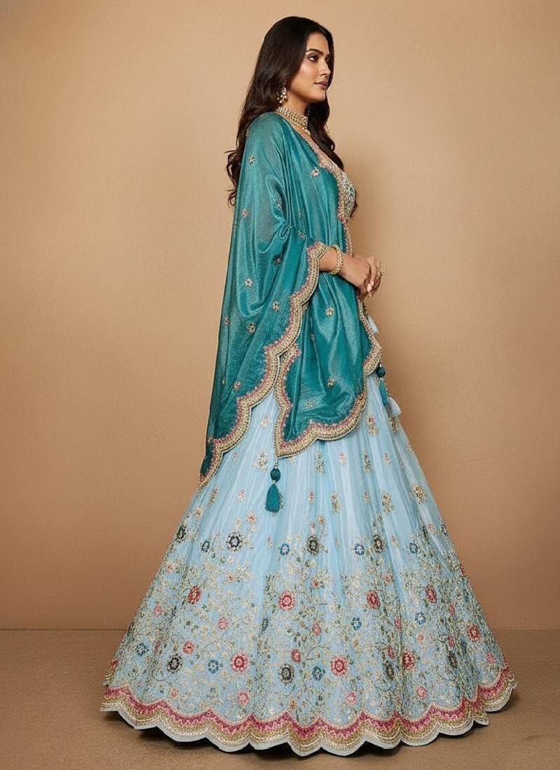 Sky blue embroidery tissue lehenga choli with dupatta