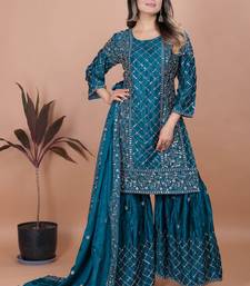 | Product Name | Teal Festive Wear Designer Chinon Sequence Embroidery Work Readymade Suit | |