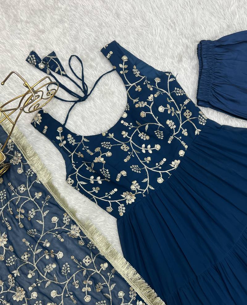 Teal festive wear designer heavy pure soft fox georgette readymade suit stitched