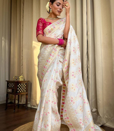White designer weaving jacquard banarasi soft silk traditional saree
