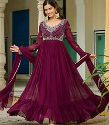 Wine festive wear designer faux blooming georgette embroidery work readymade suit stitched