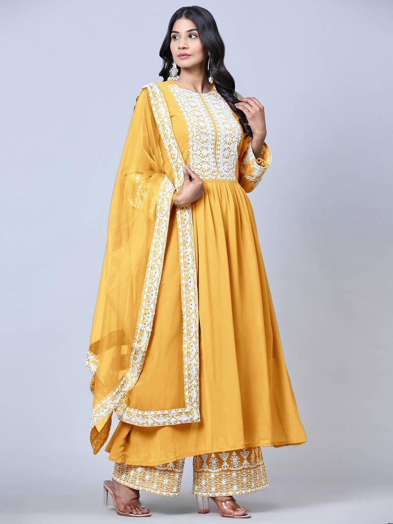 | Product Name | Yellow & Faux Georgette Designer Heavy Traditional Wear Salwar Suit | |
