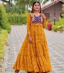 Yellow festive wear designer faux georgette embroidery thread work with real mirror & codi lace readymade suit stitched