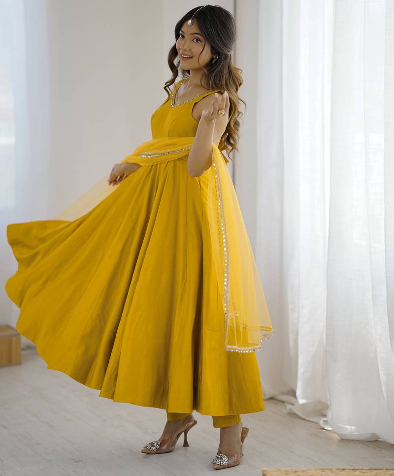 | Product Name | Yellow Festive Wear Designer Heavy Pure Roman Silk Readymade Suit | |