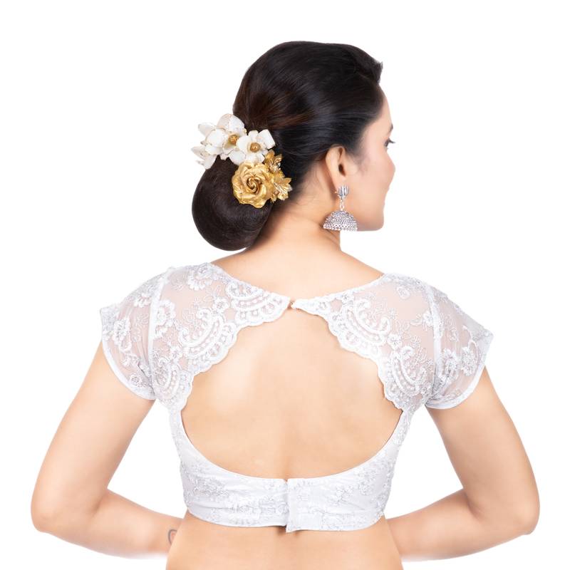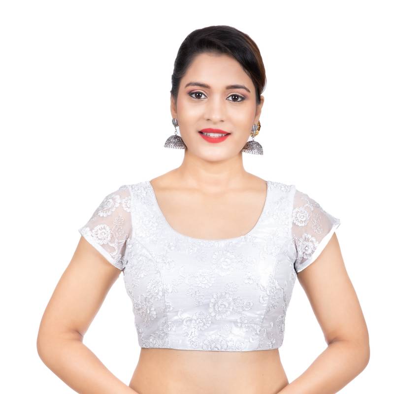 | Product Name | Back Open Art Silk Silver Net Short Net Sleeves Readymade Blouse | |