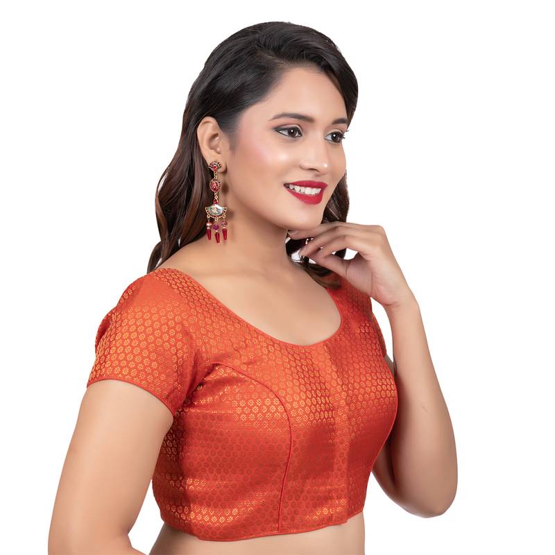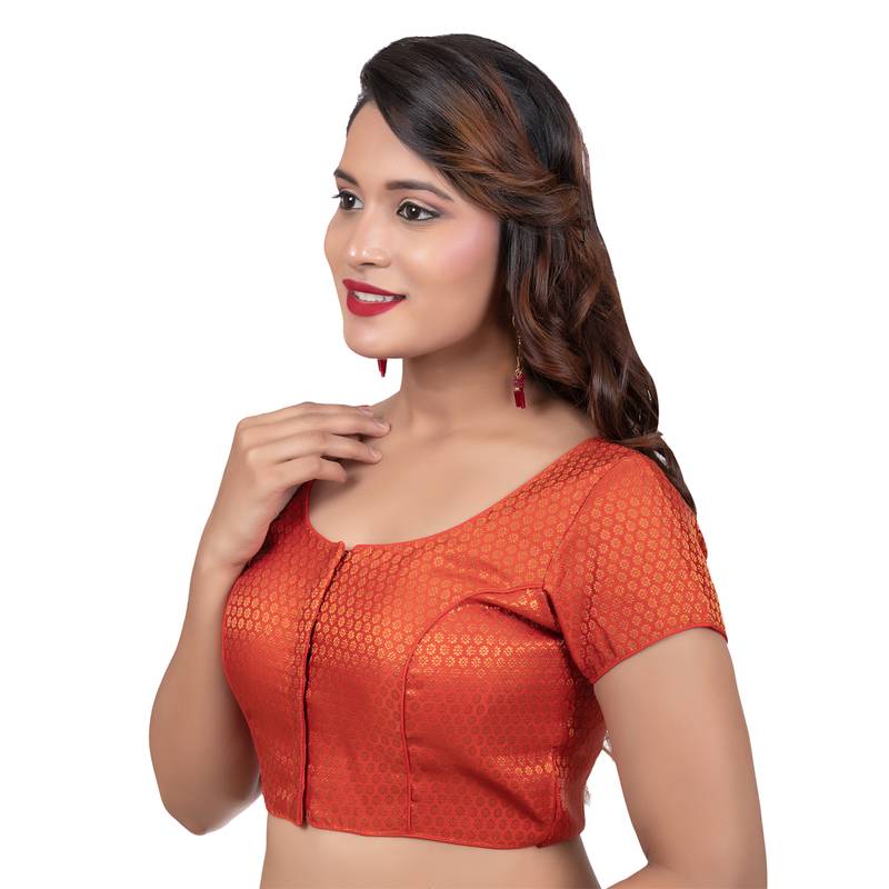 | Product Name | Orange Brocade Short Sleeves Readymade Blouse | |