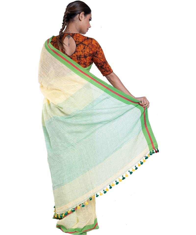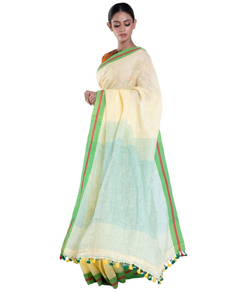 | Product Name | Cappuccino Handloom Linen Saree With Green Border Pallu | |