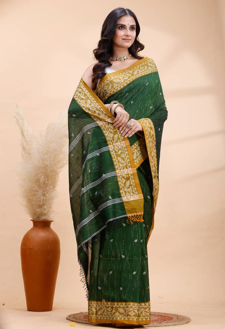| Product Name | Dark Green Handloom Cotton Saree With Mustard Yellow Heritage Border | |