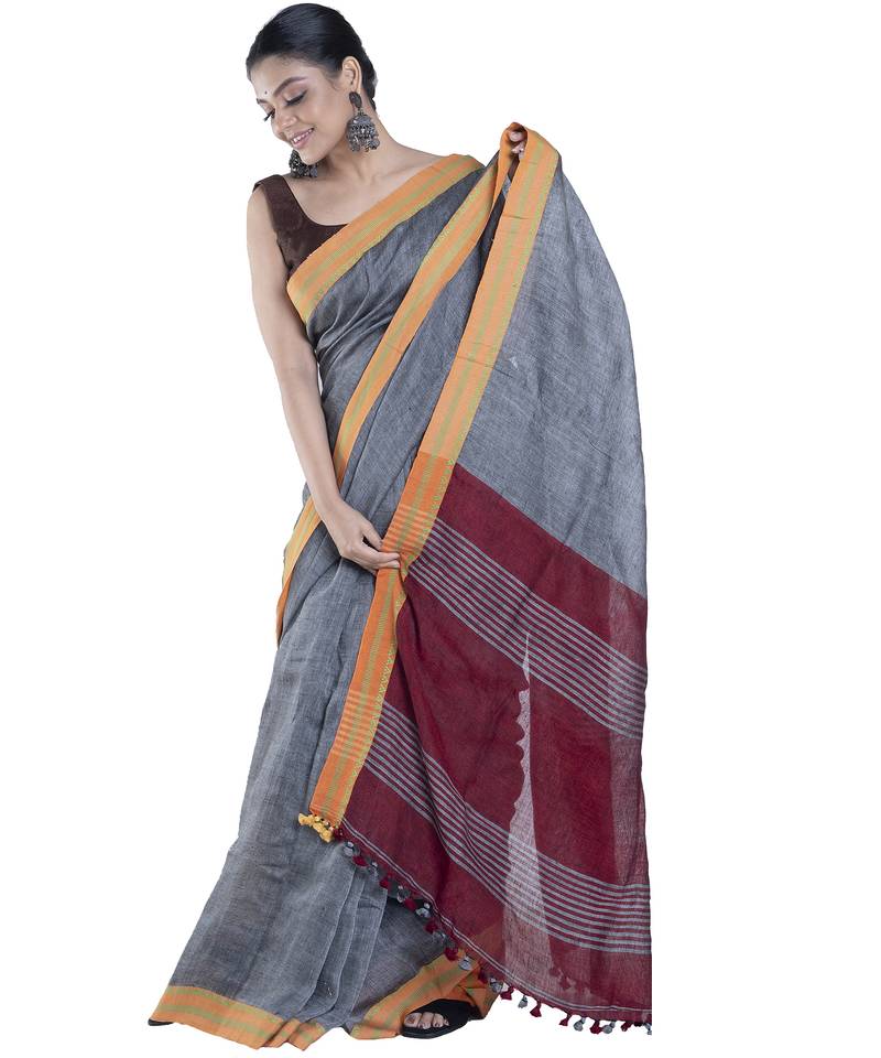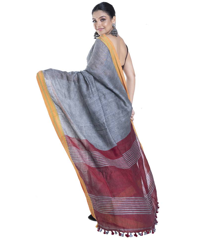 | Product Name | Dusky Grey Handloom Linen Saree With Contrasting Border And Pallu | |