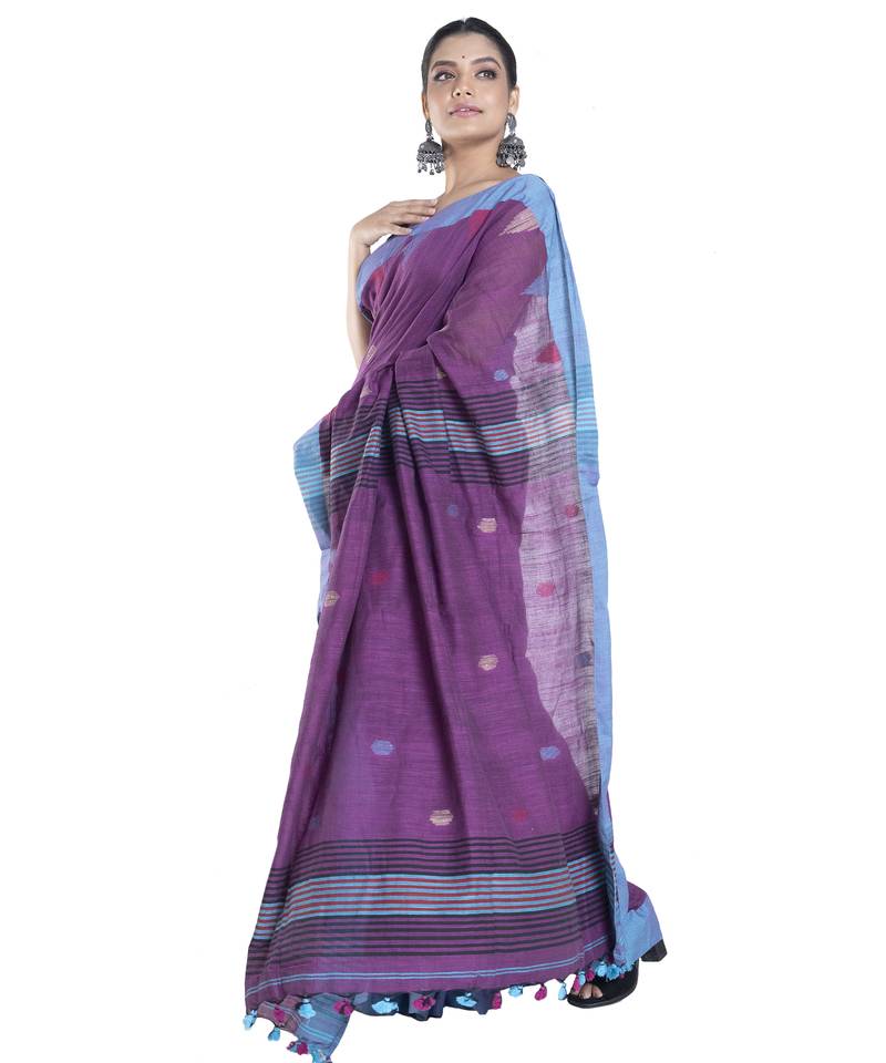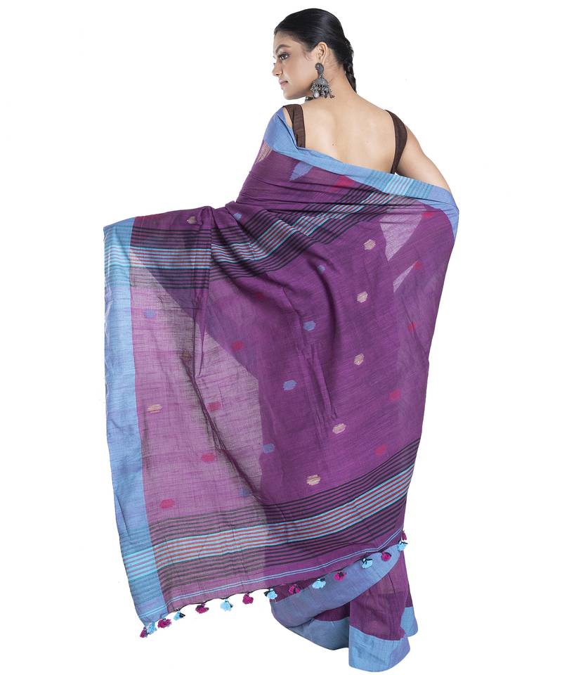 | • | Saree | : | Color- Purple / Fabric- Cotton |