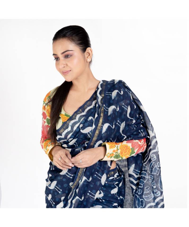 | Product Name | Indigo Cotton Silk Chanderi Saree With Flamingo Print | |