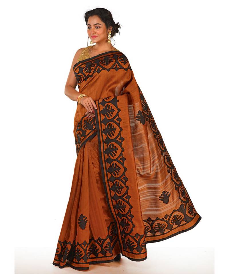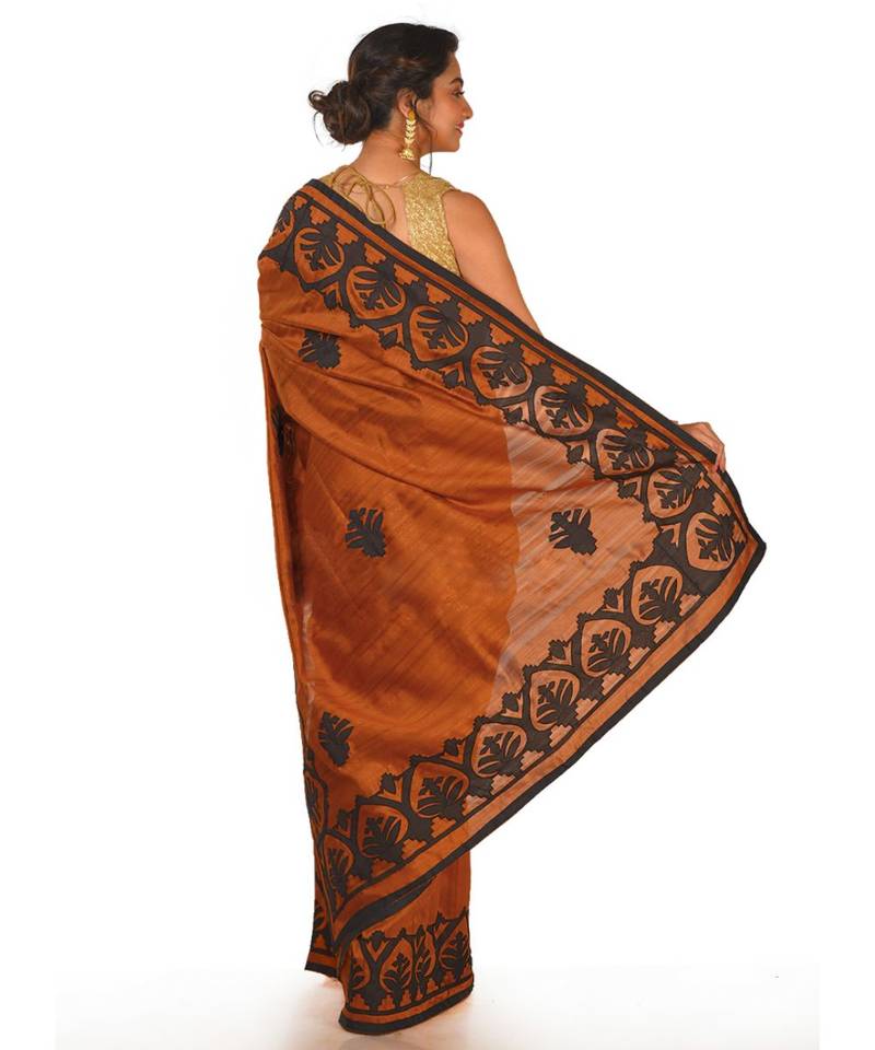 | Product Name | Orange Blended Silk Saree With Black Colour Applque Work | |